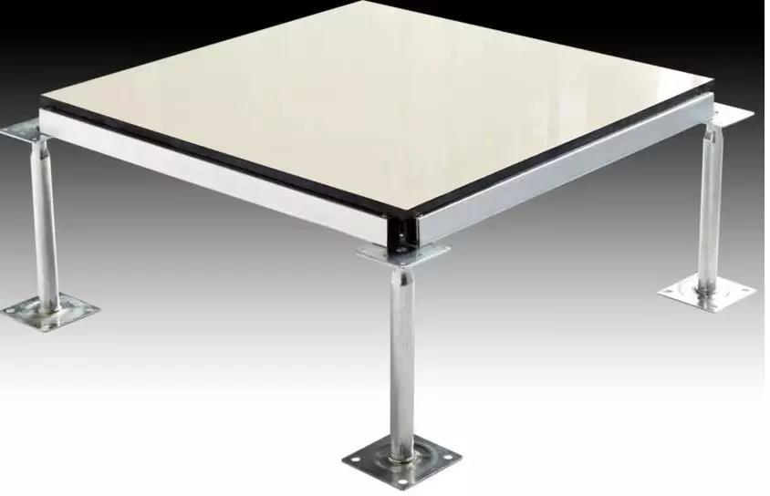 采用防靜電瓷磚作為面層、復合全鋼地板或水泥刨花板、四周導電膠條封邊加工而成(沒有膠條的陶瓷地板在磕碰時容易掉瓷)。具有防靜電性能穩定、環保、防火、高耐磨、高壽命(使用壽命30年以上)、高承載(均布載荷1200kg/平方米以上)、防水、防潮、裝飾效果好等優點,適用于各類機房。缺點是地板本身較重(一塊地板15kg以上),對樓板承重有一定影響;另外也需要專業的安裝工人才能安裝好,否則會安裝不平整。