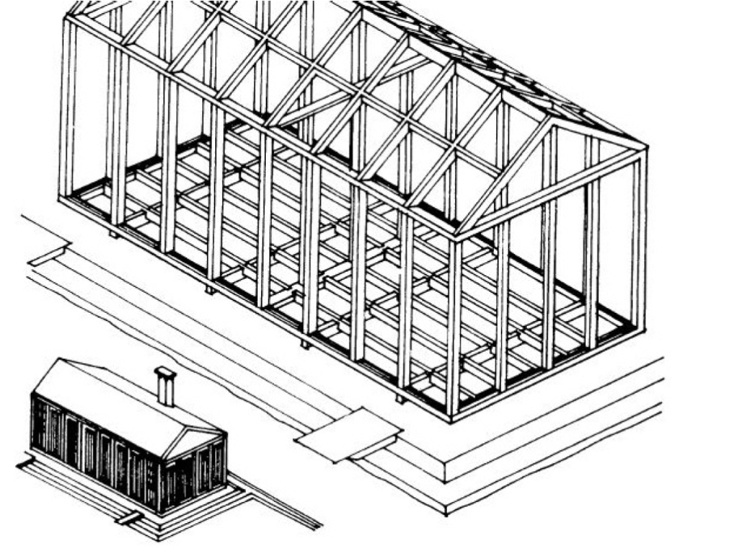 1830年,為實現(xiàn)海外殖民地定居點的快速建設(shè),英國木匠曼寧(John Manning)借助造船業(yè)基礎(chǔ),發(fā)明了在英國制造并由輪船運往世界各地建造簡易的木框架房屋(Manning Portable Cottage)。